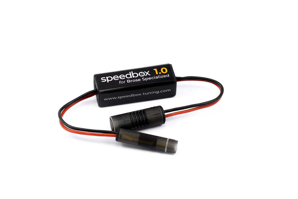 SpeedBox 1.0 is an unbridling module designed for electric bikes equipped with Brose and Specialized Brose motors (including S, S-MAG, T, C, T-ALU, except SL). It removes the 25 km/h assistance limit, enabling assistance up to higher speeds, while maintaining correct speed and distance display on the bike's display.